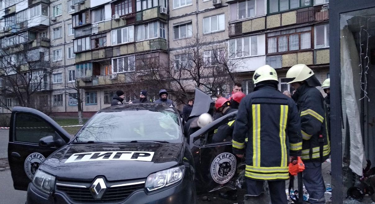 В Киеве на бульваре Перова, 25 Renault Logan въехал в остановку общественного транспорта и погиб на месте происшествия. В результате ДТП травмирован пассажир и мужчина, который находился на остановке.