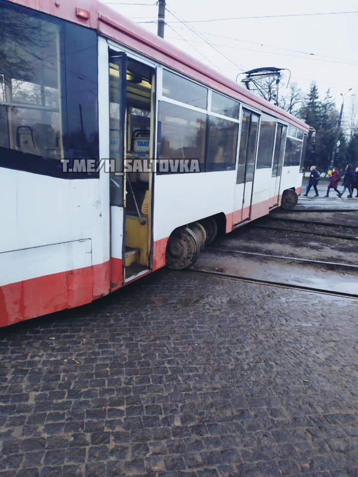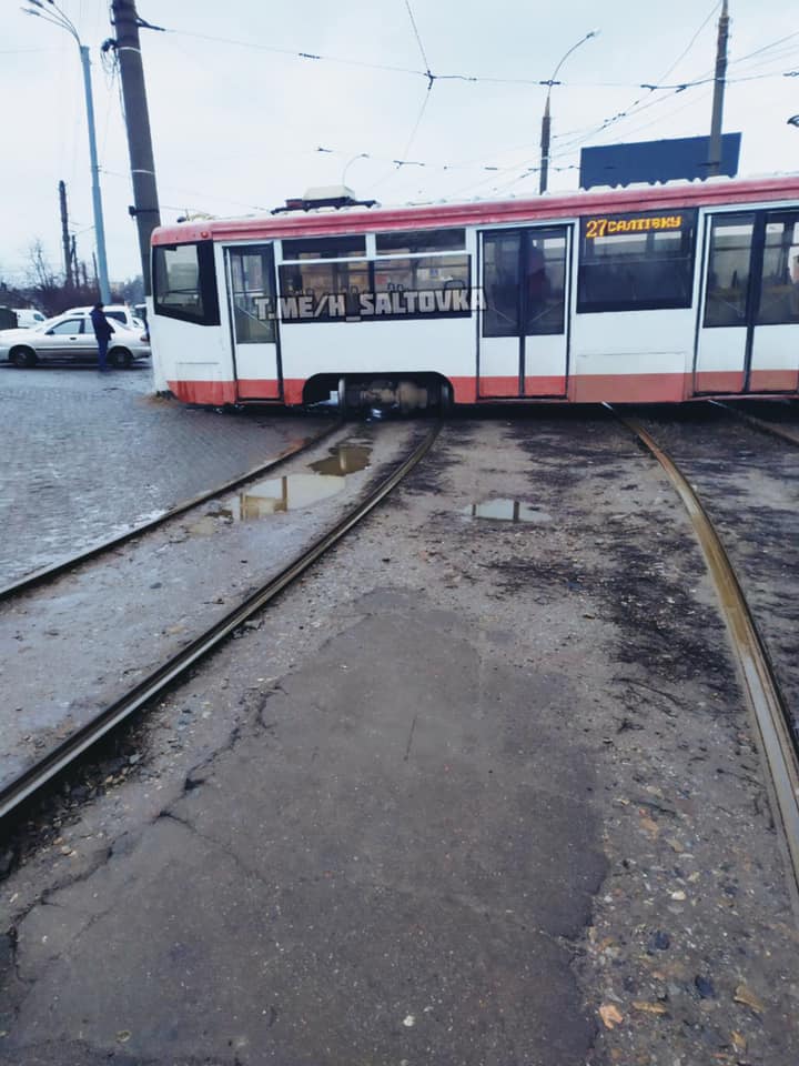 Сегодня утром в Харькове в районе торгово-развлекательного центра "Французский бульвар" трамвай на стрелке частями поехал в разных направлениях.