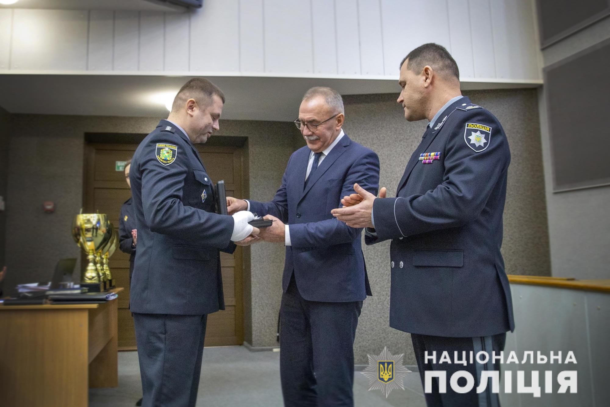 Сегодня, во время итогового совещания Национальной полиции Украины, первый заместитель министра внутренних дел Сергей Яровой вручил заместителю начальника отдела криминальной полиции Немышлянская отдела полиции Александру Гицелеву отличие МВД Украины «Огнестрельное оружие».