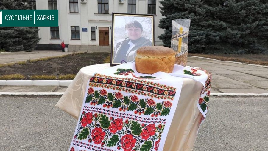 Церемония прощания проходит во дворе дома погибшей в Зачепиловке.