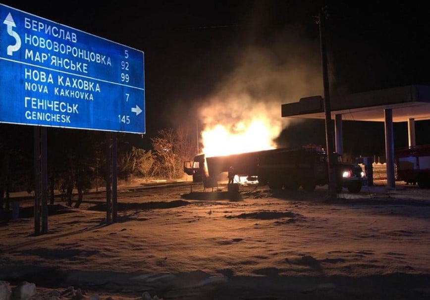 7 февраля в 18:16 вблизи города Берислав Херсонской области, водитель грузового автомобиля не справился с управлением и допустил столкновение с модулем газовой АЗС.