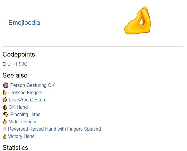Сайт Emojipedia определяет новую иконку как «рука в вертикальном положении с собранными вместе пальцами, известная также как итальянский жест Ma che vuoi? («Чего ты хочешь?)».