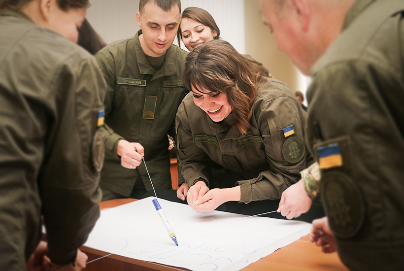 «Вправа показує виконавцям, що необхідного результату можна досягнути тільки працюючи разом, тобто, вчить працювати в команді. Окрім цього, вона надає можливість психологу одразу виявити лідерів, аутсайдерів та показати бажання чи небажання військовослужбовців працювати пліч о пліч зі своїми товаришами. І в подальшому психолог визначає, як далі працювати з тим чи іншим військовослужбовцем», - розповідає Андрій.