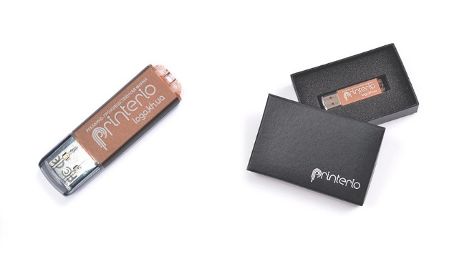 В Printerio идут в ногу со временем. Не хотите записывать? Тогда получите цифровой носитель! Вот вам флешка с нанесенным на нее логотипом фирмы. Так даже лучше. Ведь ручка − это всего лишь инструмент. Ее легко заменить в случае потери.