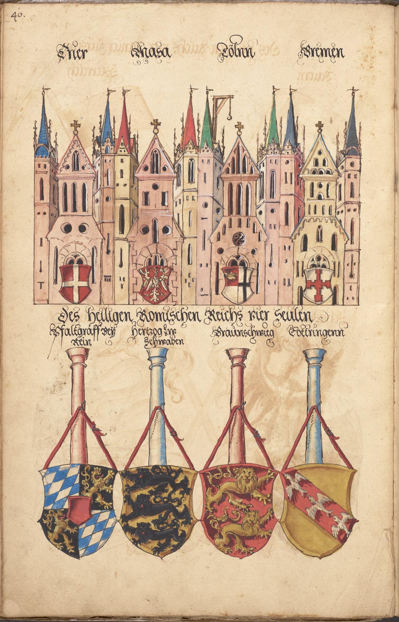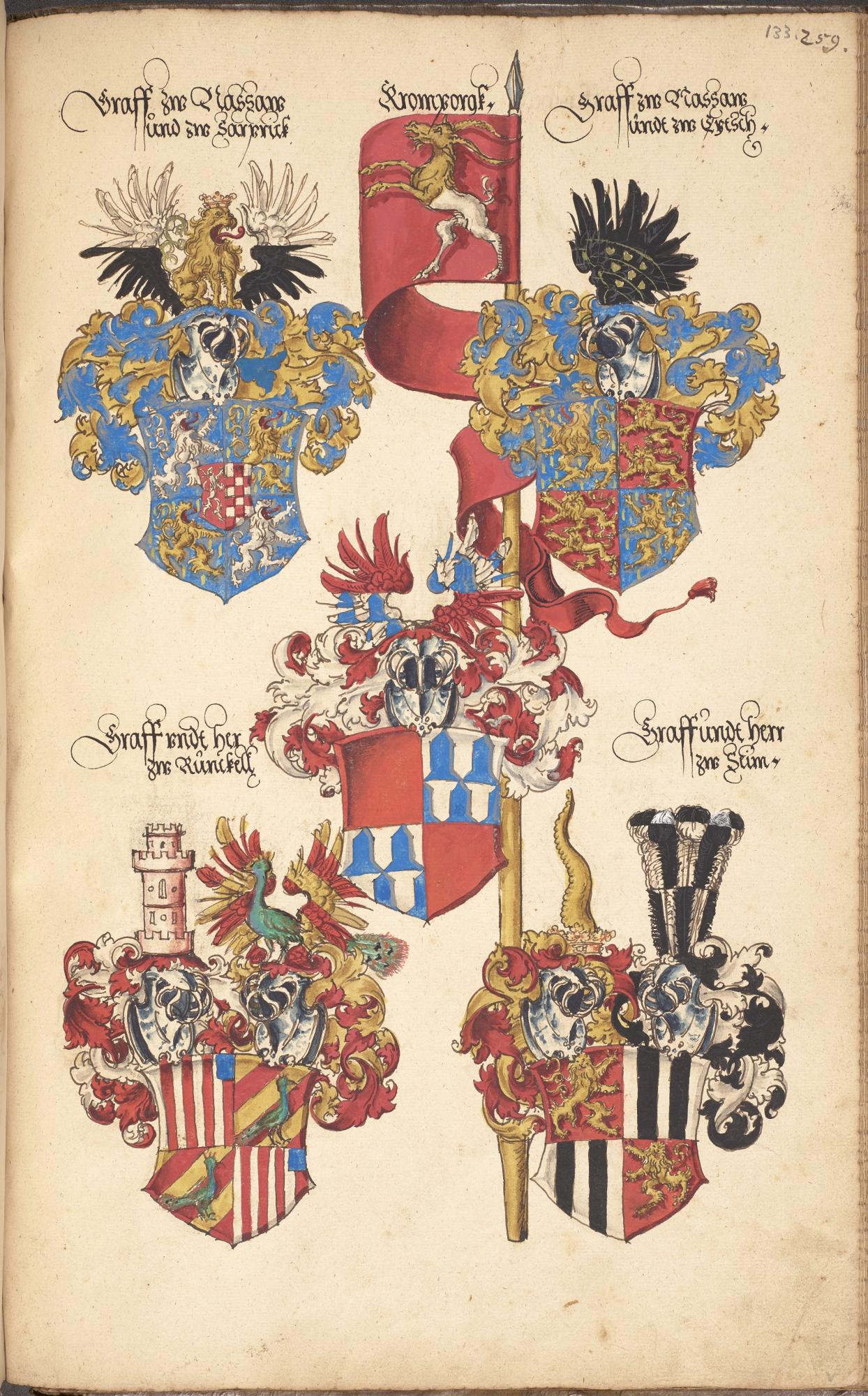 В Библиотеке имени Джона Райландса, входящей в состав Манчестерского университета, эта книга значилась под индексом German MS. 2 и долгое время оставалась неизученной. На обложке ее имелась надпись Deutsches Stammbuch «Немецкая родовая книга». Когда Бен Поуп приступил к изучению книги, он сразу понял, что это не генеалогический справочник, а пособие иного рода — так называемый «гербовник». Книга содержит раскрашенные вручную изображения более 1800 гербов. По традиции того времени начинается она с выдуманных гербов исторических персонажей, затем следуют гербы городов и церквей, а потом множество гербов знатных родов Священной Римской империи.