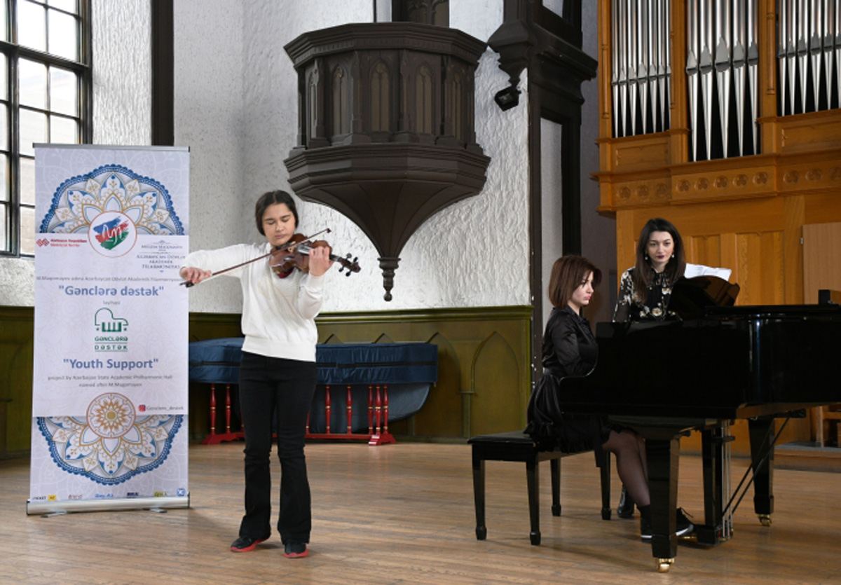 Мастер-класс прошел в Зале камерной и органной музыки Азербайджанской государственной академической филармонии имени Муслима Магомаева в рамках III Международного конкурса молодых исполнителей классической музыки и фольклора WORLD HARMONY ("Мир гармонии").