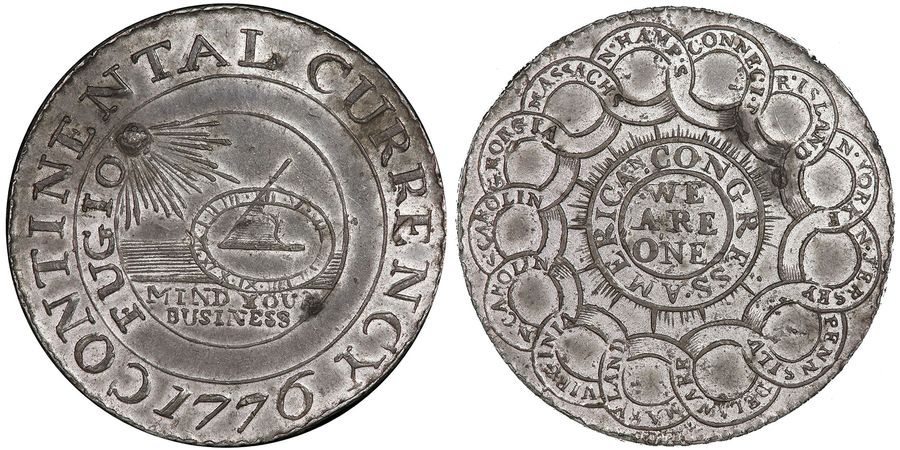 Монеты этого типа были выпущены в 1776 году. На аверсе монеты в центре изображены солнечные часы и надпись MIND YOUR BUSINESS. Далее следует надпись FUGIO и изображение солнца с лучами, а по краю монеты написано CONTINENTAL CURRENCY. На реверсе отчеканены переплетенные кольца с названиями тринадцати колоний, вошедших в состав Соединенных Штатов. В центре — надписи WE ARE ONE и AMERICAN CONGRESS.