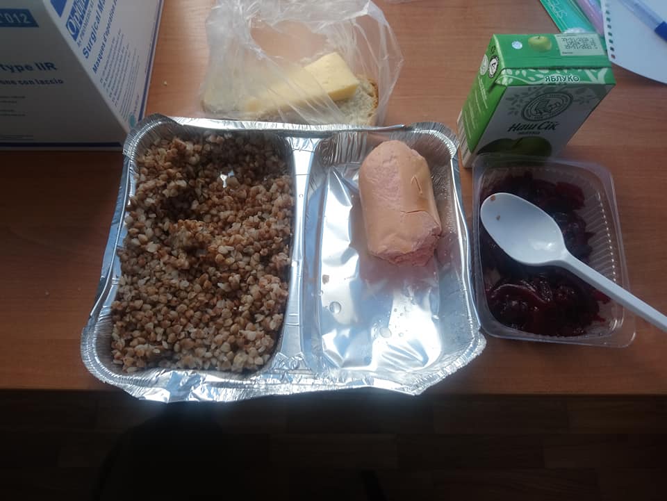 Годують тричі на день. Приносять їжу люди у захисних костюмах, респіраторах, окулярах.