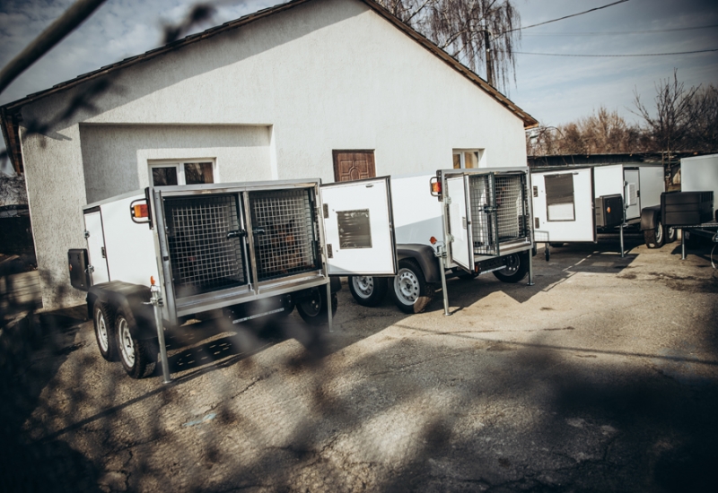 У комплект, окрім самого причепу, входить 2 ящики для зберігання спеціального спорядження та корму і запасне колесо.