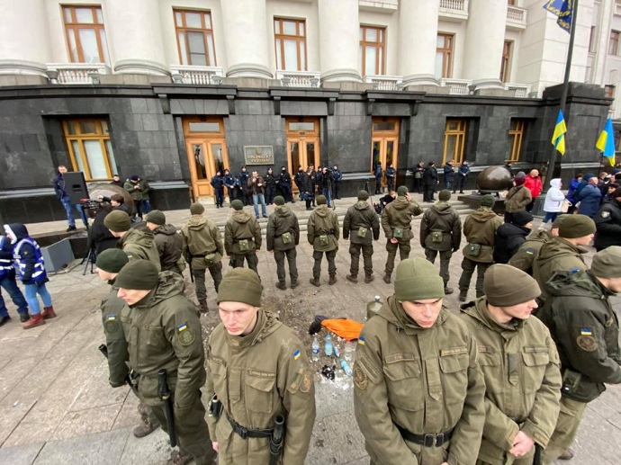 В Киеве во время митинга медиков мужчина поджег себя у офиса президента Украины Владимира Зеленского.