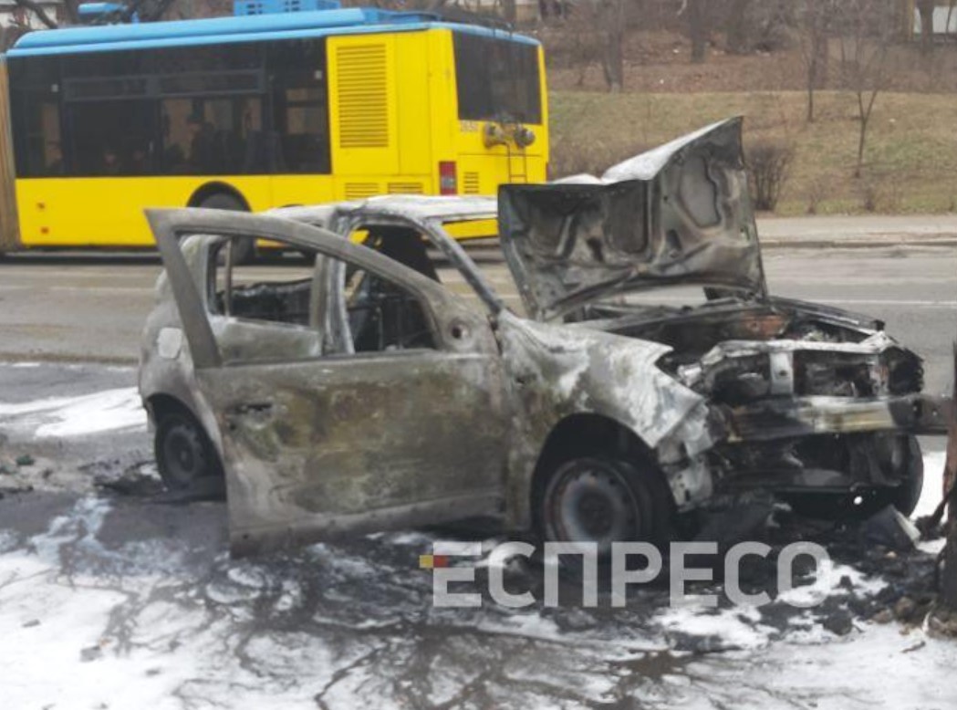 В воскресенье, 1 марта 2020 года, на Подольском спуске, что в Киеве, произошло ДТП, в результате которого полностью сгорел автомобиль.