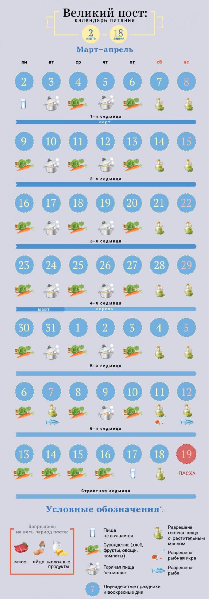 2 марта – первый день Великого поста, который заканчивается на Пасху: в этом году это случится 19 апреля.