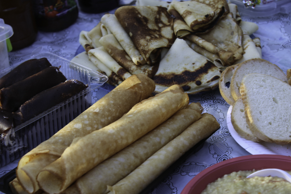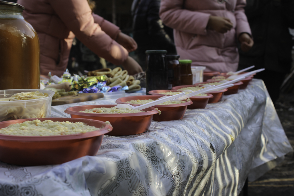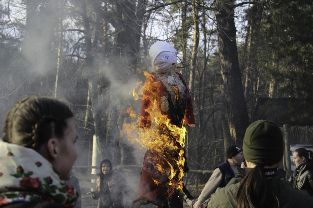 А поки хлопці були зайняті, кипіла польова каша і шкварчала нова порція млинців на будь-який смак і колір. Так і настав час водити хороводи і підпалювати Марену. І солдати, і діти, і дорослі – всі зібралися навколо символу зими, співали пісні і веселилися.