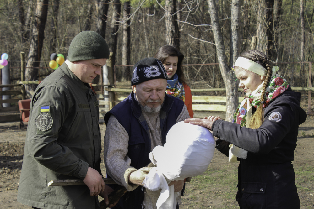 Вже на території санаторію, під час підготовчої суєти, солдати трохи розслабилися. Хтось колов дрова, хтось розводив багаття, а дехто допомагав створювати один з головних символів свята – опудало Марени.