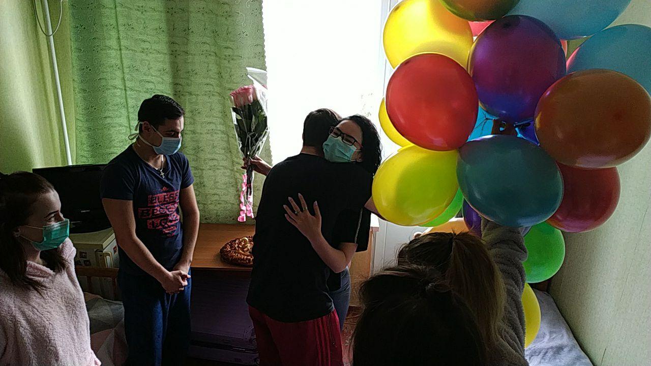 В санатории в Новых Санжарах, где находятся эвакуированные из Китая, отметили день рождения.