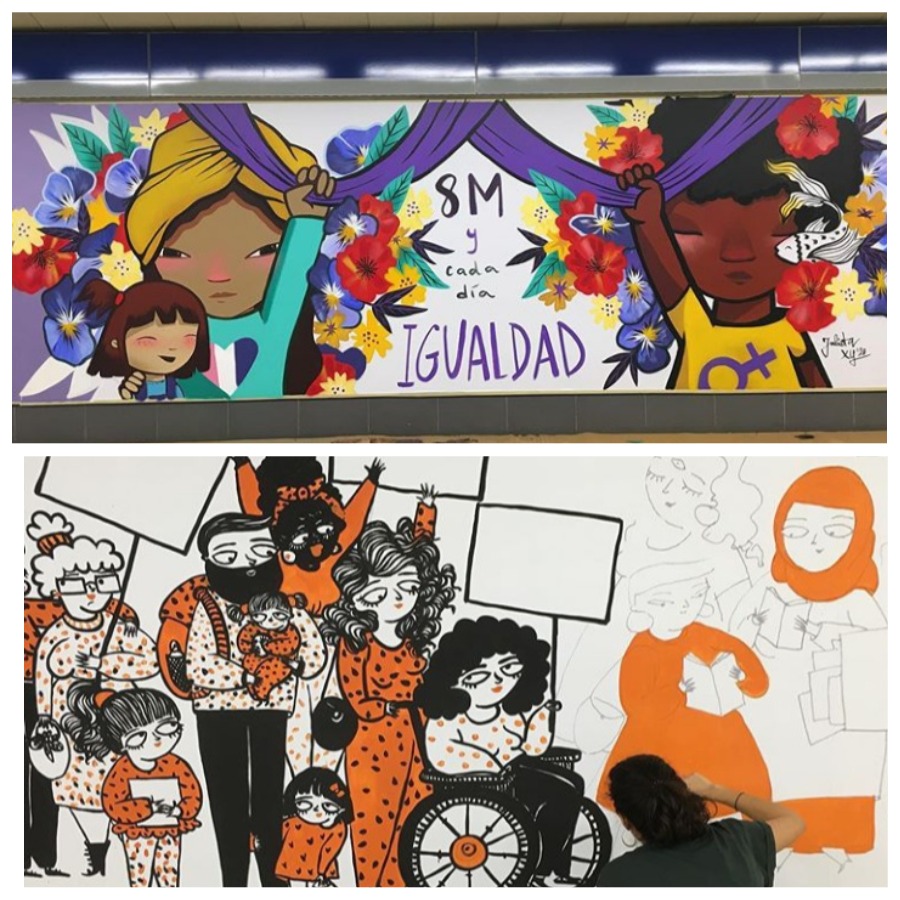 «В Мадриде есть много стен, на которых можно увидеть картины, созданные женщинами. Но когда люди проходят около них, они думают, что их создал мужчина», - рассказывает Сара Фратини, которая родилась в Венесуэле, но живет в Мадриде. Она и еще две художницы (NuriaToll и Julieta XLF), создающие уличное искусство, разместили свои работы на станции метро Sainz de Baranda перед Международным женским днем. Их работы и процесс создания можно увидеть на странице одной из участниц в Инстаграм @julieta_xlf. Они также сделали ярче один из поездов линии 6, так что их творчество будет перемещаться по круговой линии Мадрида. Такая творческая инициатива осуществляется в рамках мадридского проекта Street Art Project, который с 2012 года презентует городское искусство в метро Мадрида, пишет Испания по-русски.