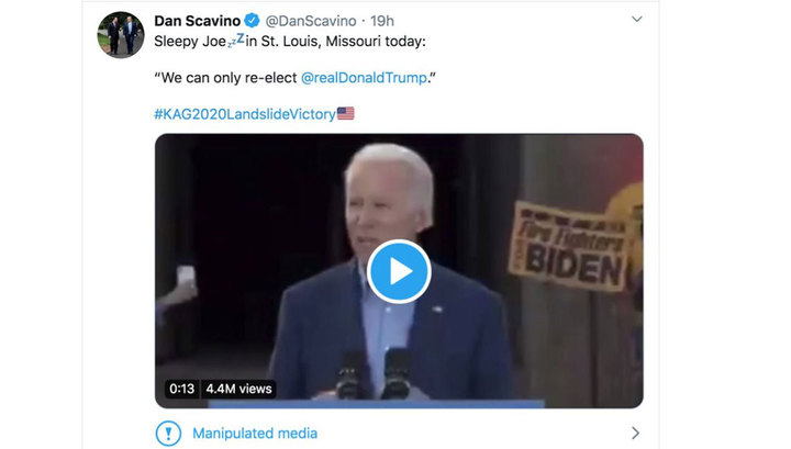Видеоролик с выступлением демократа Джо Байдена, который ретвитнул президент США Дональд Трамп, Twitter признал недостоверным.