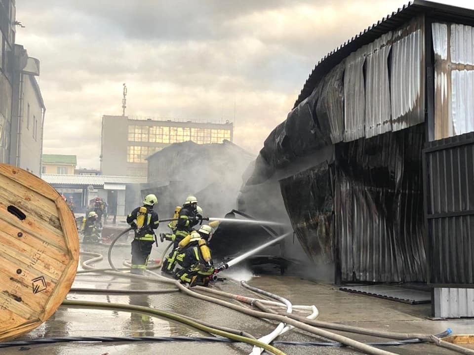 Спасатели сообщили, что в 16:01 в Деснянском районе по ул. Красноткацкая, 61 на территории "Украгросинтез" возник пожар в складском здании (размером 15х70).