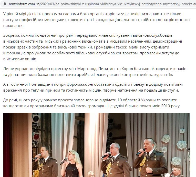 Лише упродовж відвідин оркестру міст Миргород, Пирятин та Хорол близько п’ятидесяти юнаків та дівчат виявили бажання поповнити армійські лави у якості контрактників та курсантів.