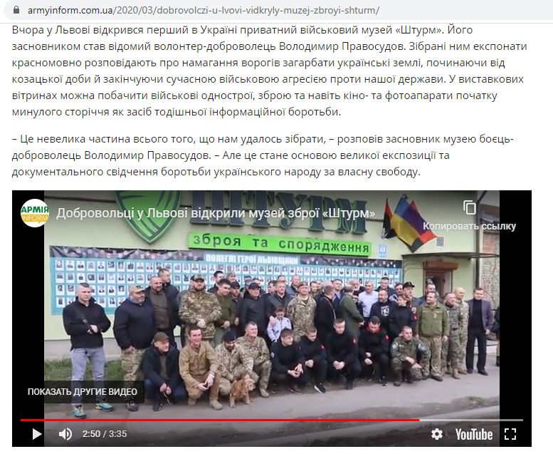 Кроме того, сегодня же информагентство Минобороны публикует информацию о том, что ВЧЕРА (!!!) с участием военных провели еще одно массовое мероприятие - на этот раз во Львове. Там собрали людей на открытие частного музея: