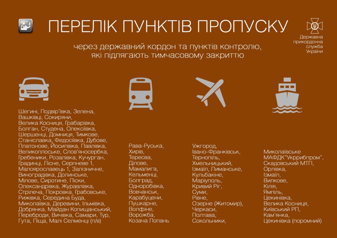 С 16 марта по 3 апреля в рамках мер по противодействию распространению коронавируса приостановят работу 107 пунктов пропуска на границе Украины.