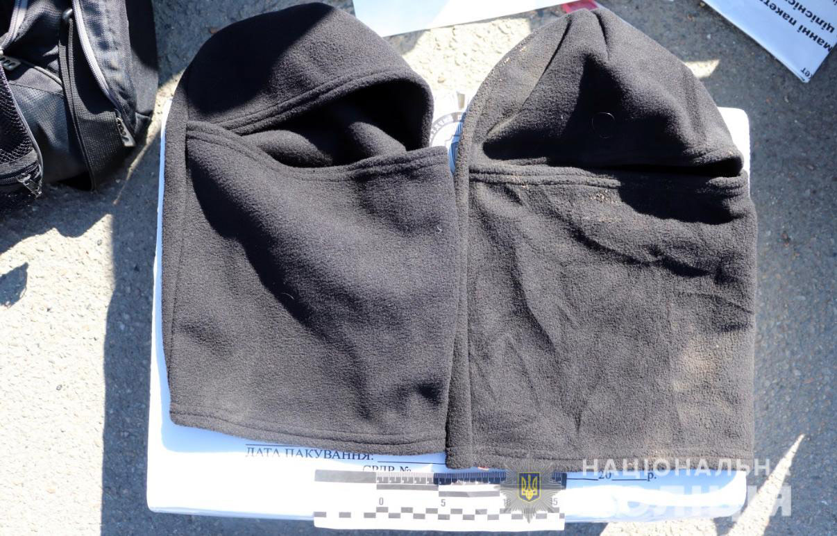 У транспортних засобах, які використовували зловмисники, виявлено та вилучено пістолет та автомат зі спорядженими магазинами, набої, ніж, молоток, балаклави, рукавчики та інші предмети, підготовлені для вчинення злочину.