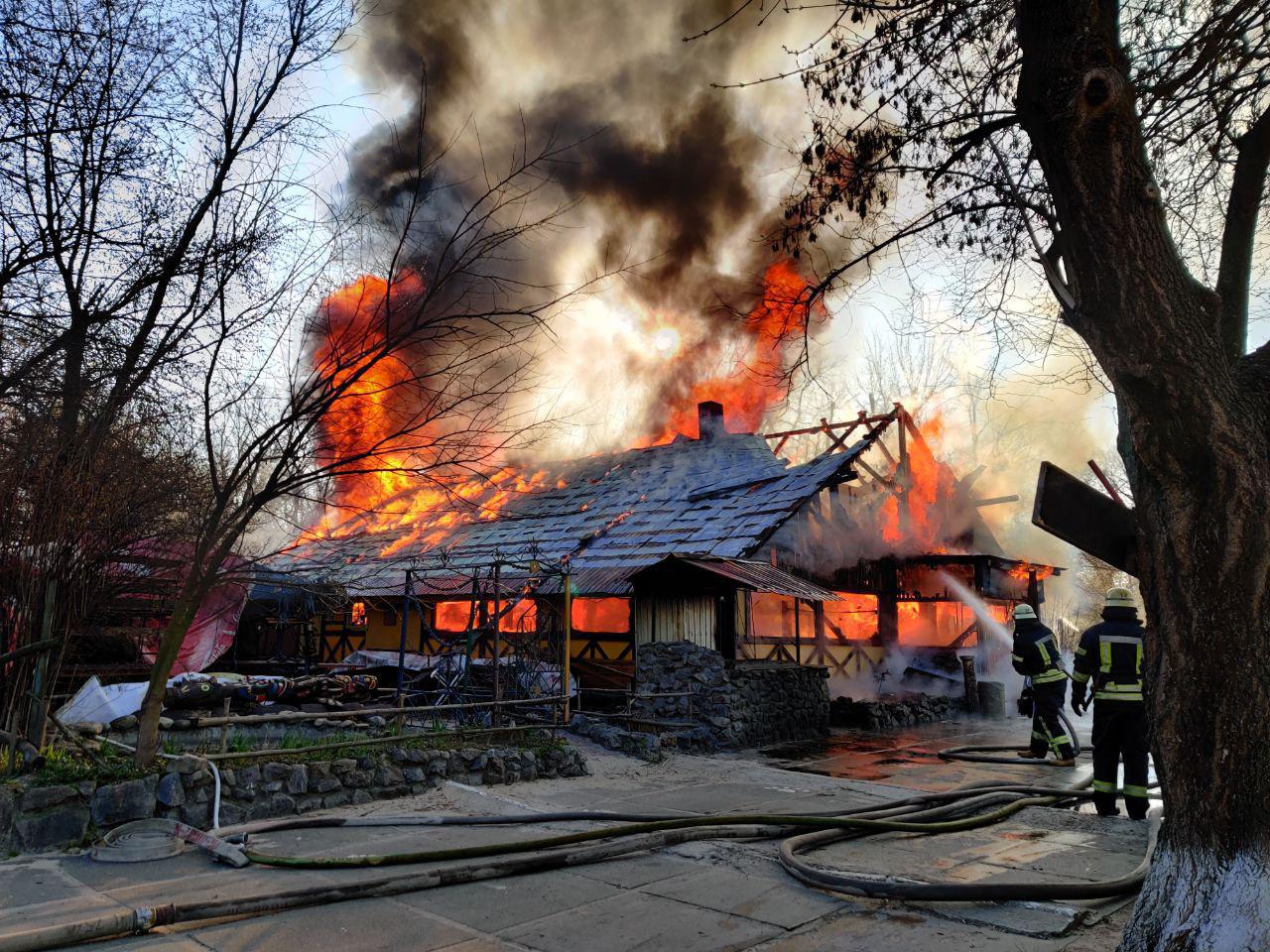 "25 марта в 7:14 в оперативно-координационный центр Главного управления ГСЧС Украины в г. Киеве поступило сообщение о пожаре, который возник на Гидропарке, что в Днепровском районе столицы. На место происшествия незамедлительно прибыли ближайшие пожарно-спасательные подразделения. По прибытию, огнеборцы установили, что горит одно из кафе на Гидропарке на площади 500 кв. м и передали о повышенном ранге пожара", - говорится в сообщении.