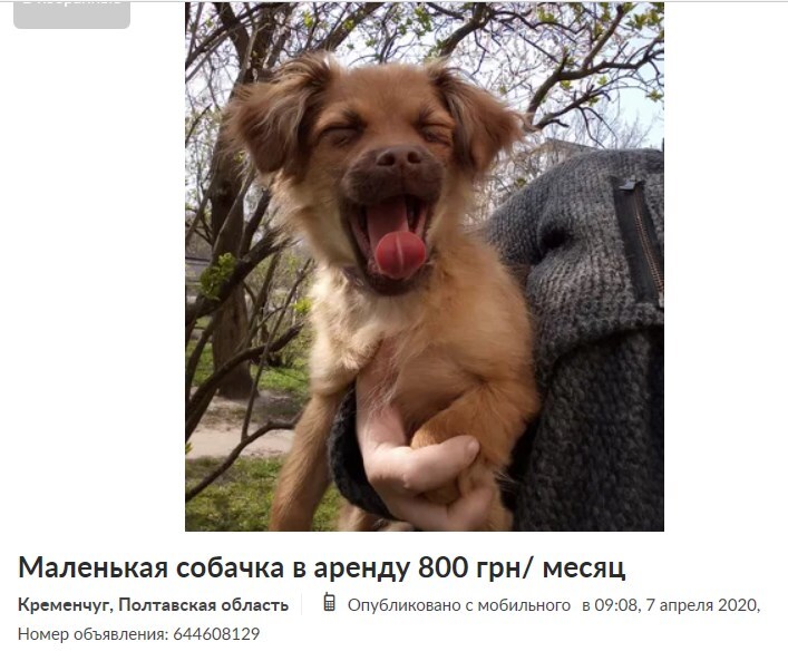 А вот в Кременчуге решили не мелочиться, и сразу сдать пятимесячного метиса длинношерстной чихуахуа в аренду на все время карантина. Стоимость в месяц – 800 гривен. Каково будет животному – владельца, судя по всему, не особо волнует.