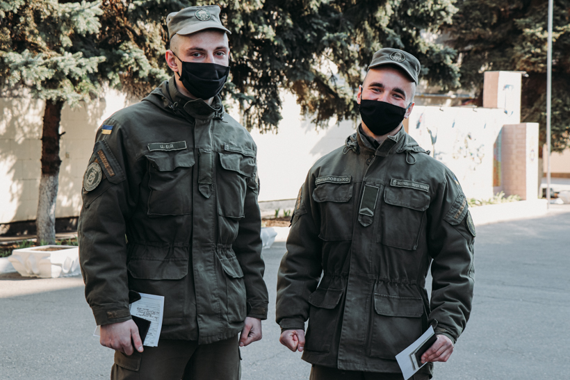Вячеслав Дишловенко и Андрей Цабий проходили службу в кинологическом подразделении и вместе со своими воспитанниками выполняли задачи по охране общественного порядка на Харьковщине. Ребята проходили подготовку в Учебном центре НГУ и даже получили соответствующие сертификаты.
