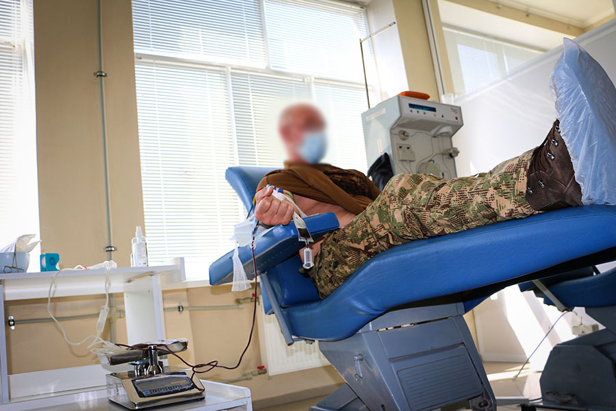 Одними з перших, хто відгукнувся, були бійці окремого загону спеціального призначення Східного територіального управління. Легкі на підйом, вони прибувають невеличкими групою, здають кров і вирушають, хто на службу, а хто – відпочивати.