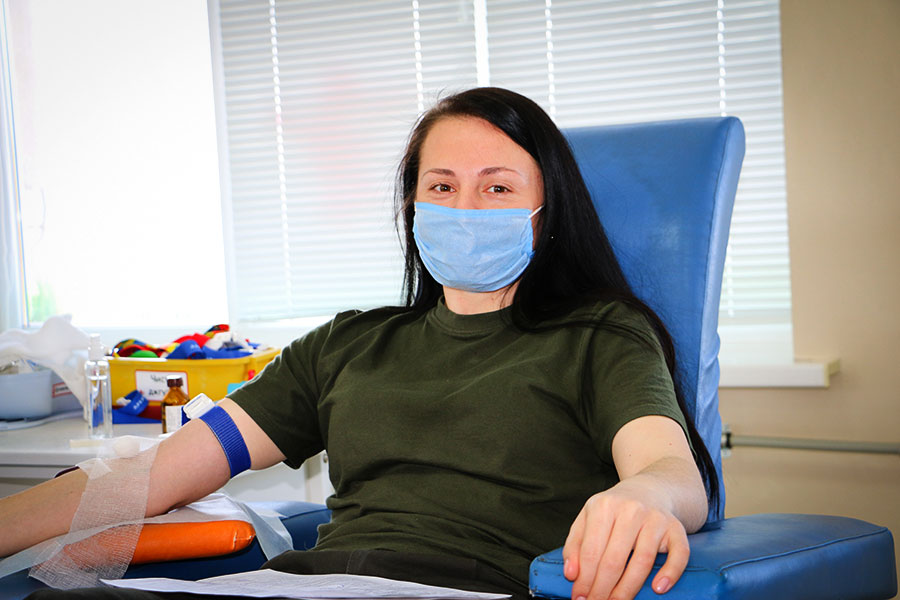«Стан відмінний. Я давно про це думала! Проте все не виходило, відкладалося. І ось я тут. Здача пройшла успішно. Здала як і потрібно – 450 грам крові», – старший лікар-епідеомілог служби медичного забезпечення капітан Єлизавета Канна.