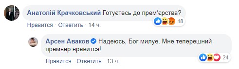 Один из подписчиков министра под записью о возможном завершении карантина и мерах, которые принимает власть для поддержки жителей страны и бизнеса, уточнил, готовится ли Аваков к премьерству.