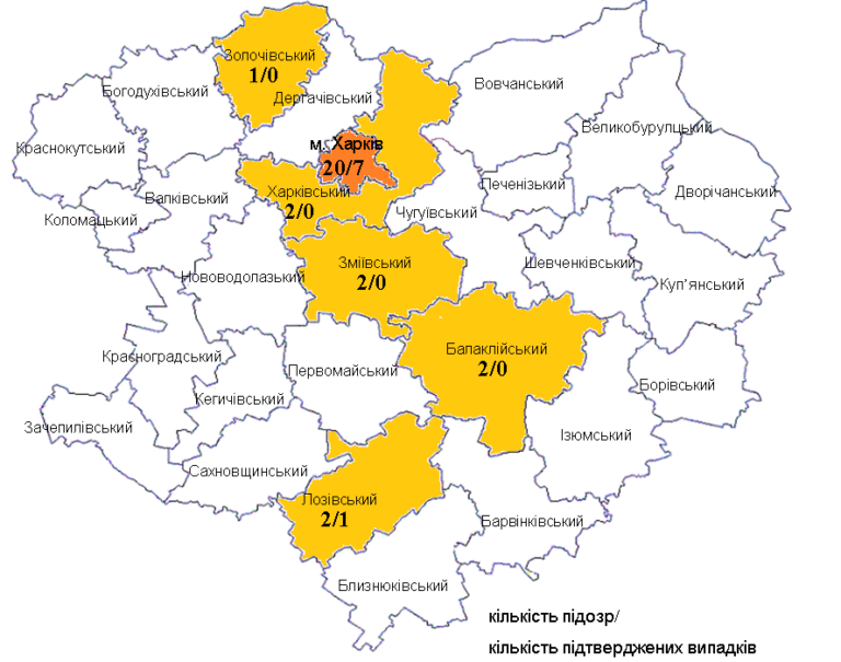 - 20 подозрений - в Харькове (кроме того, 7 случаев в Харькове уже подтверждены);