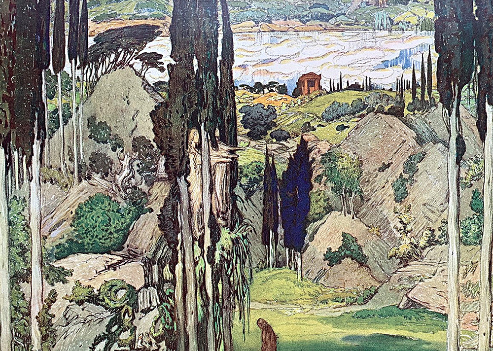 Лев Бакст. Эскиз декорации к балету «Дафнис и Хлоя». 1913.