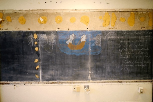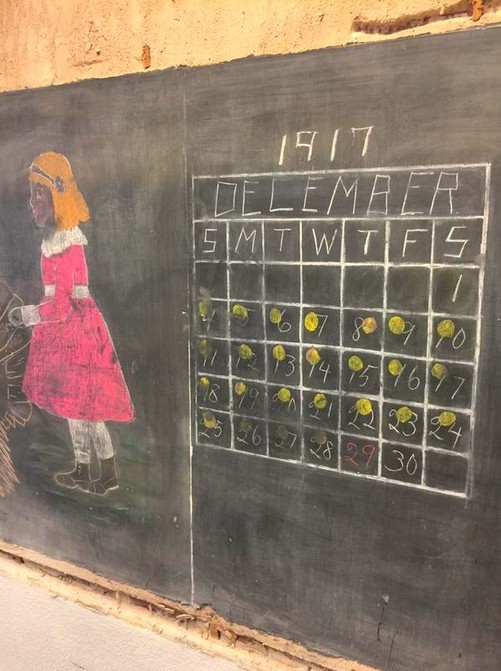На досках остались записи и рисунки мелом. На некоторых указаны даты: декабрь 1917 года.
