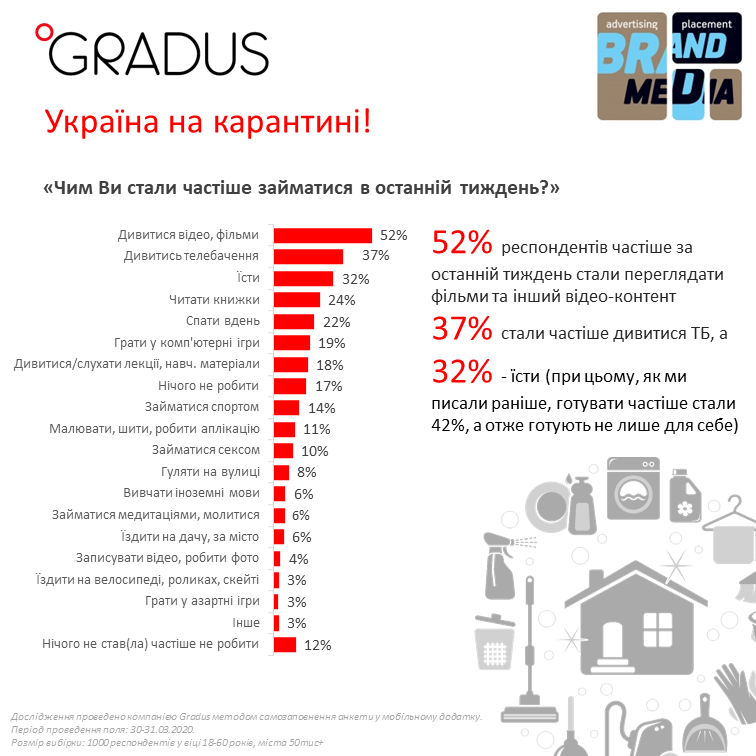 Согласно данным Gradus, 18% стали чаще смотреть учебные материалы и лекции, еще 8% изучать языки.