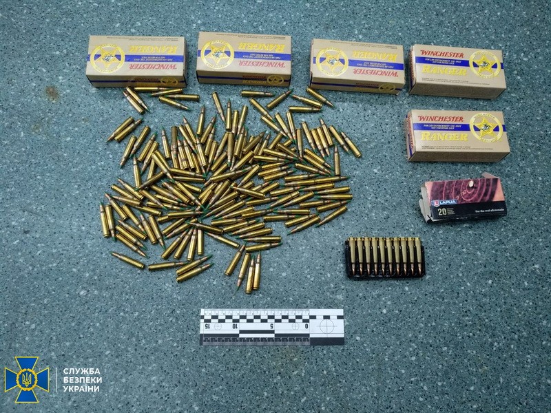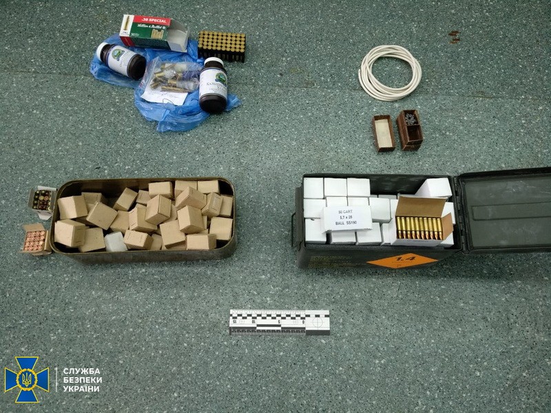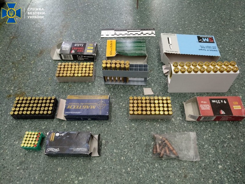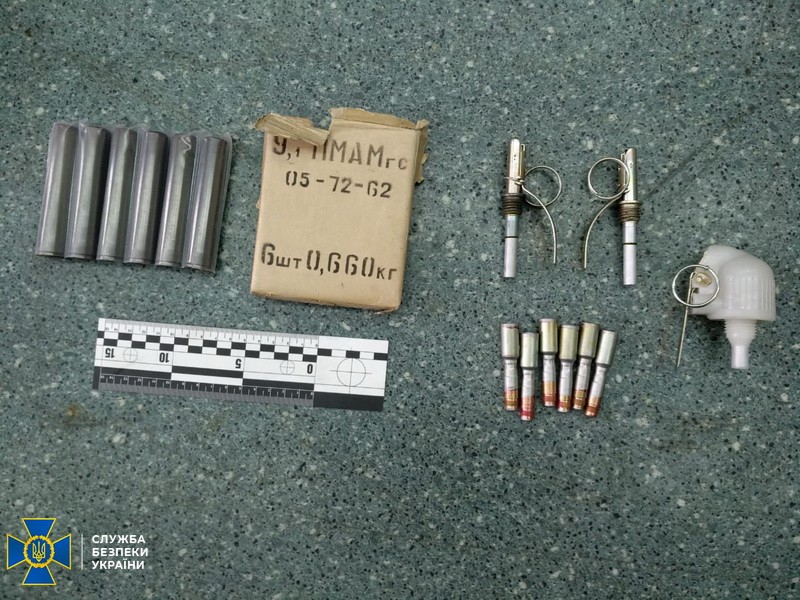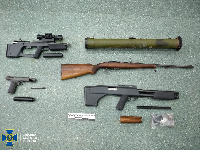 Во время проведения обысков по месту жительства фигуранта сотрудники СБУ обнаружили большой арсенал огнестрельного оружия и боеприпасов. Правоохранители изъяли ручной противотанковый гранатомет РПГ-26, подствольный гранатомет и 2 гранаты к нему, пистолет STEYR 1914 с глушителем, винтовка типа карабин, ружье Mauser-Werks, самодельную винтовку с глушителем, 3 гранаты РГД-5 и запалы к ним, похожий на пластид материал, 12 капсюлей-детонаторов и более 9000 патронов различного калибра.