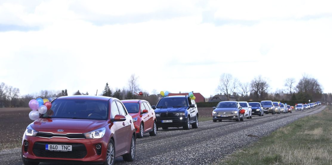 «Солнце вышло!» – сказала именинница, когда увидела проезжавшие мимо ее дома в деревне Рахигне 27 автомобилей, украшенные воздушными шарами, из которых ей махали коллеги.