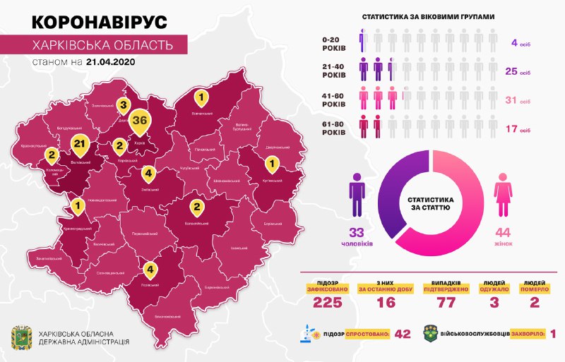 Всего с подтвержденным COVID-19 госпитализированы 44 человека, 28 - на самоизоляции.