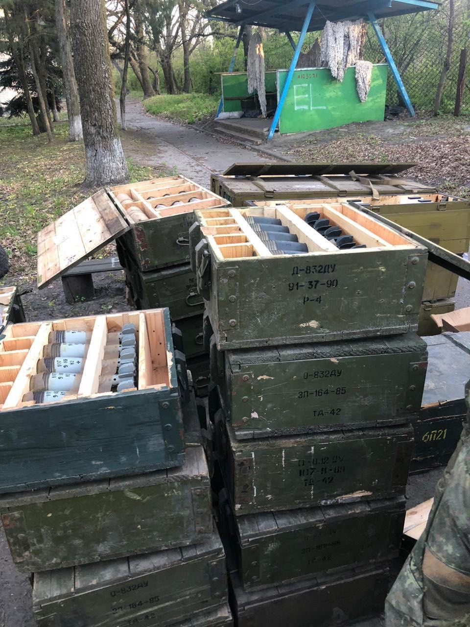 Среди техники в нем находились минометы, машина пехоты, бронетранспортер, пушки, ракетные комплексы, пулеметы, гранатометы, автоматы, пистолеты, около 100 тонн боеприпасов. Также несколько тысяч выстрелов до пушек, сотни ручных противотанковых гранат, сотни тысяч патронов различного калибра, противотанковые и противопехотные мины и другие взрывчатые вещества