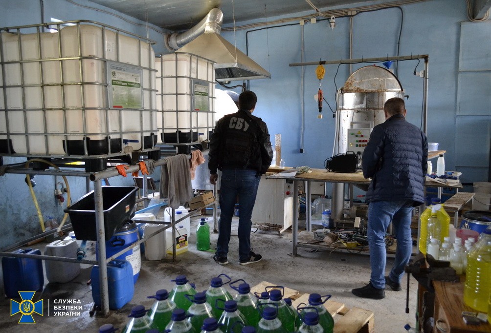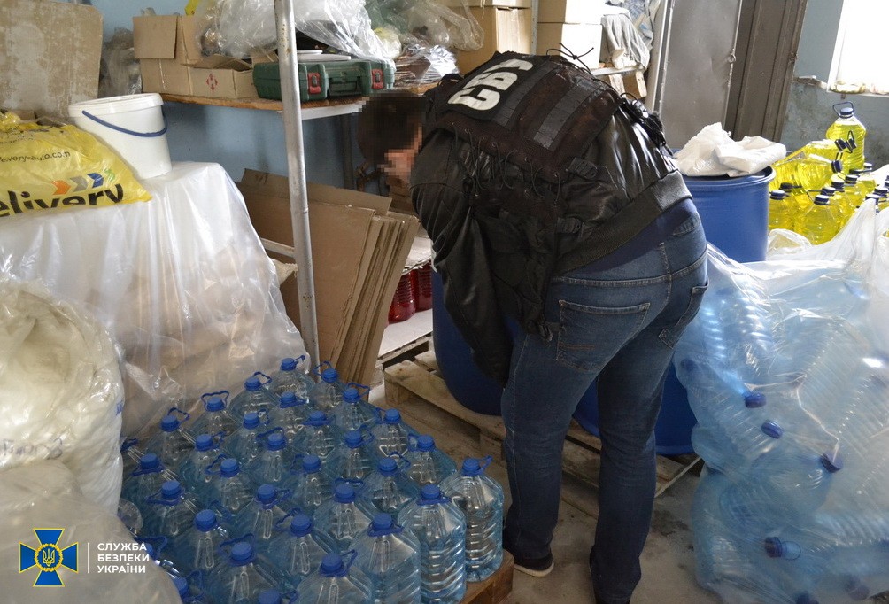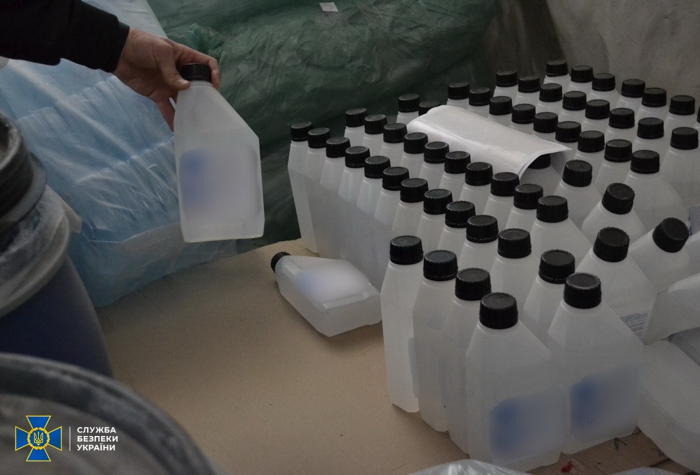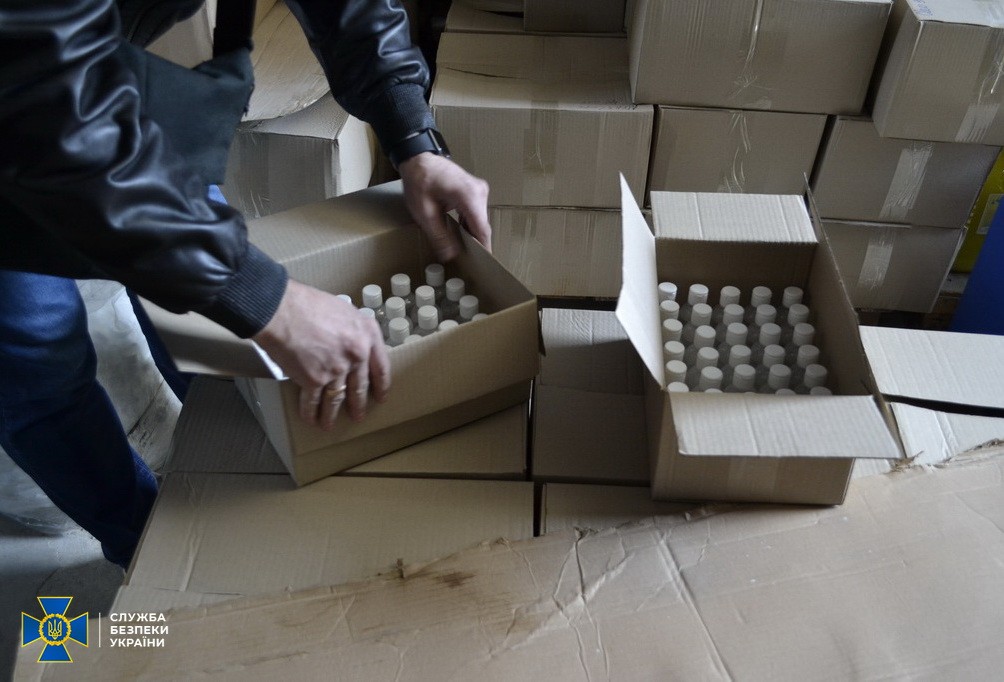 Во время санкционированных следственных действий по месту изготовления фальсификата правоохранители изъяли почти 600 литров готовой для реализации продукции, около 500 литров спирта неустановленного происхождения, химические соединения, пустую тару и оборудование для изготовления контрафактного антисептика.