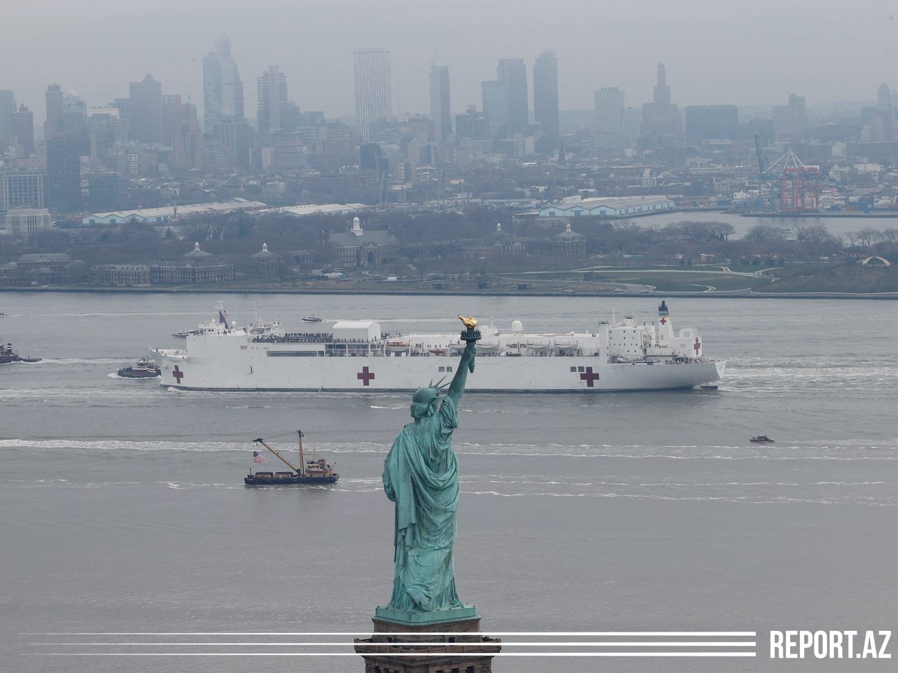 Как сообщает Report, в рамках мер по борьбе с пандемией коронавируса 30 марта корабль-госпиталь причалил в порту Манхэттена.