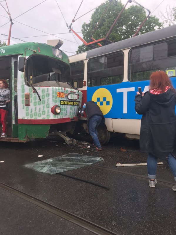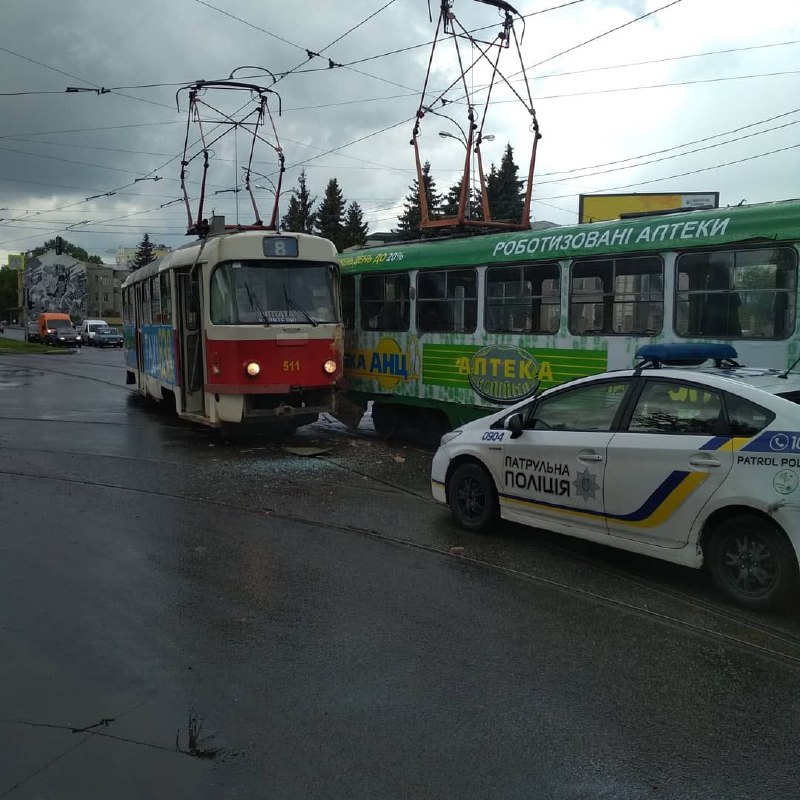 В Харькове из-за схода трамвая с рельсов произошло столкновение вагонов, следовавших во встречном направлении.
