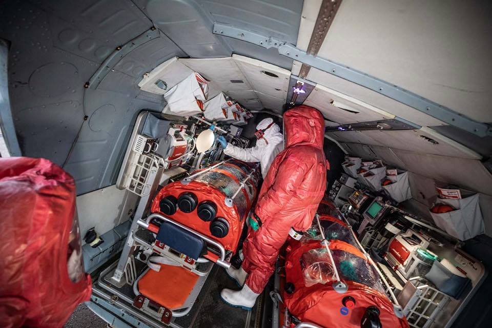 Вертолет МИ-8 участвовал в миротворческих миссиях ООН и в последний раз работал в Республике Мали. Его передали ГСЧС на условиях безвозмездного договора. Вертолет оборудован изоляционной капсулой BIO-BAG EBV-30/40, биозащитными комплектами, обеззараживающим душем, изоляционной камерой и специальным модулем, в котором фиксируется капсула в полете.