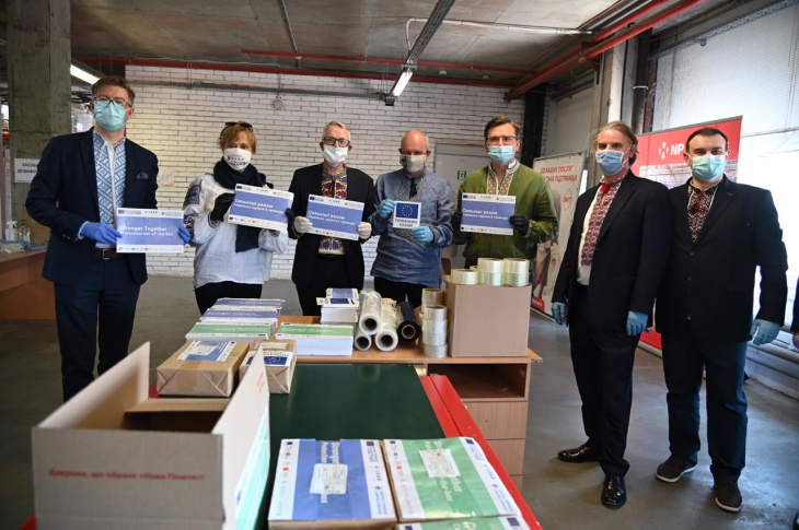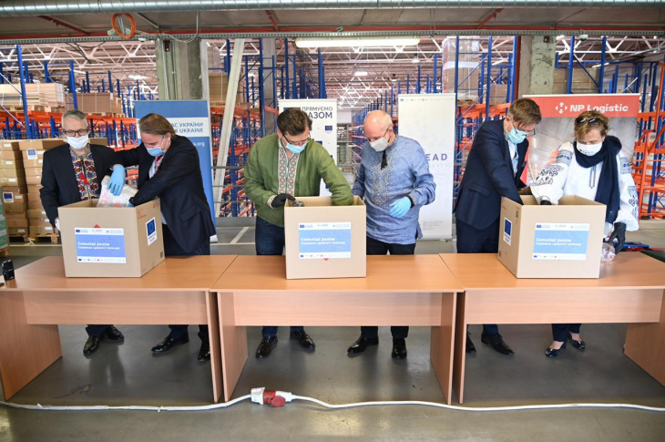 Подготовку к отправке медсредств в регионы проверили министр иностранных дел Украины Дмитрий Кулеба, глава Представительства ЕС в Украине Матти Маасикас, посол Германии в Украине Анка Фельдгузен, посол Эстонии в Украине Каим Кууск, посол Польши в Украине Бартош Цихоцкий и первый секретарь Посольства Швеции в Украине Луиз Морсинг.