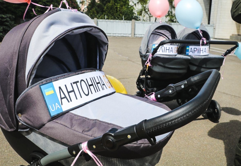 Сегодня в Главном управлении Национальной гвардии Украины командующий генерал-лейтенант Николай Балан представил две детские коляски семье подполковника Юрия Ющенко, у которого родилась тройня.