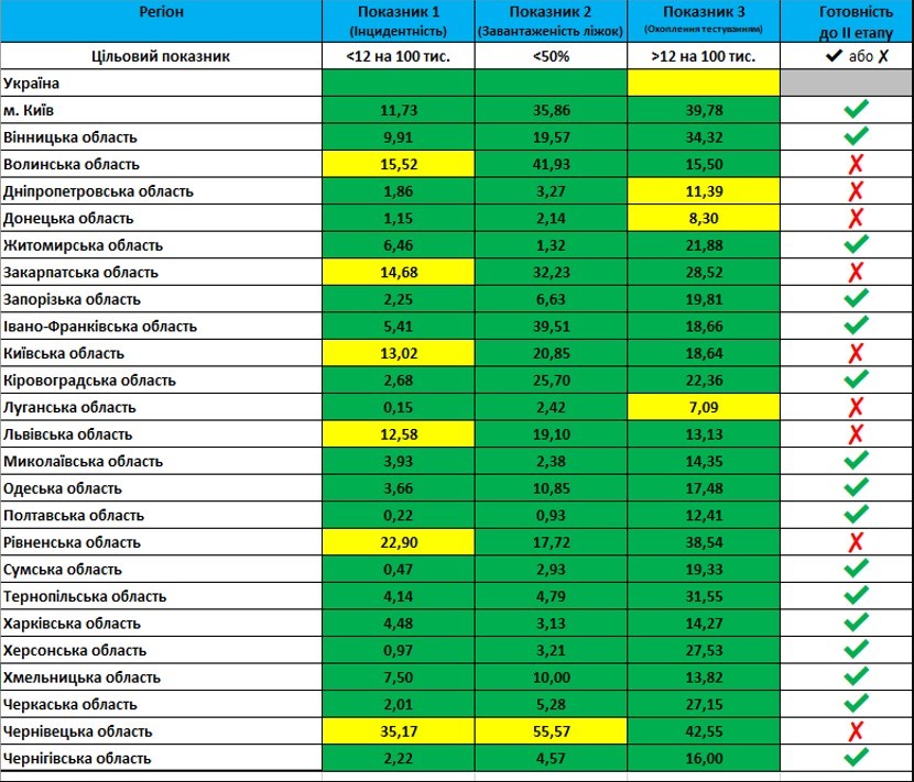 Так, согласно данным Минздрава, снимать ограничения не готовы Волынская, Днепропетровская, Донецкая, Закарпатская, Киевская, Луганская, Львовская, Ровенская и Черновицкая область.