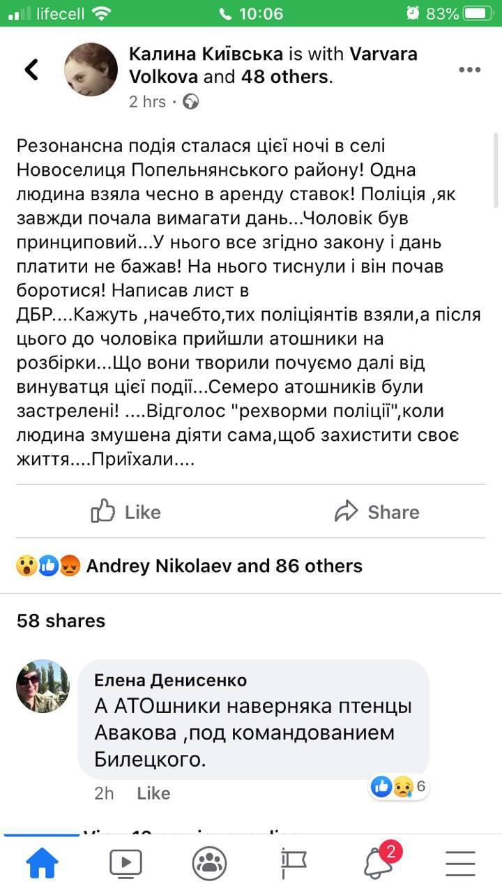 А потом появилось опровержение от жены убийцы и от полиции и оказалось, что атошники приехали отдыхать на ставок раньше, чем в этом же районе кого-то там взяли на взятке. И конфликт был на идеологической теме, а не на теме рекета. Мужик набухался, вспылил и намесил...