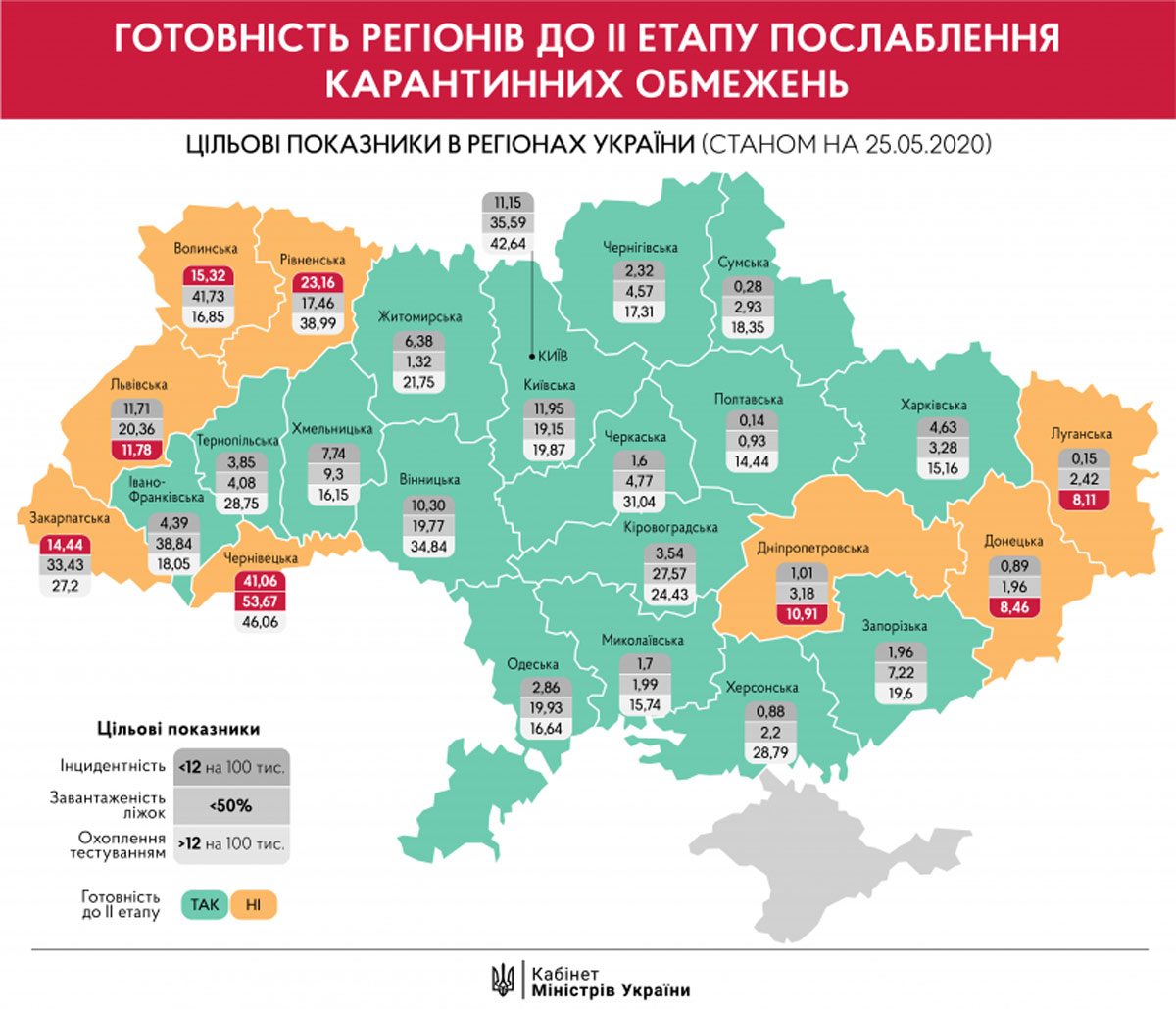 Показатели готовности регионов ко второму этапа ослабления карантина - по состоянию на 25 мая – иллюстрирует инфографика: