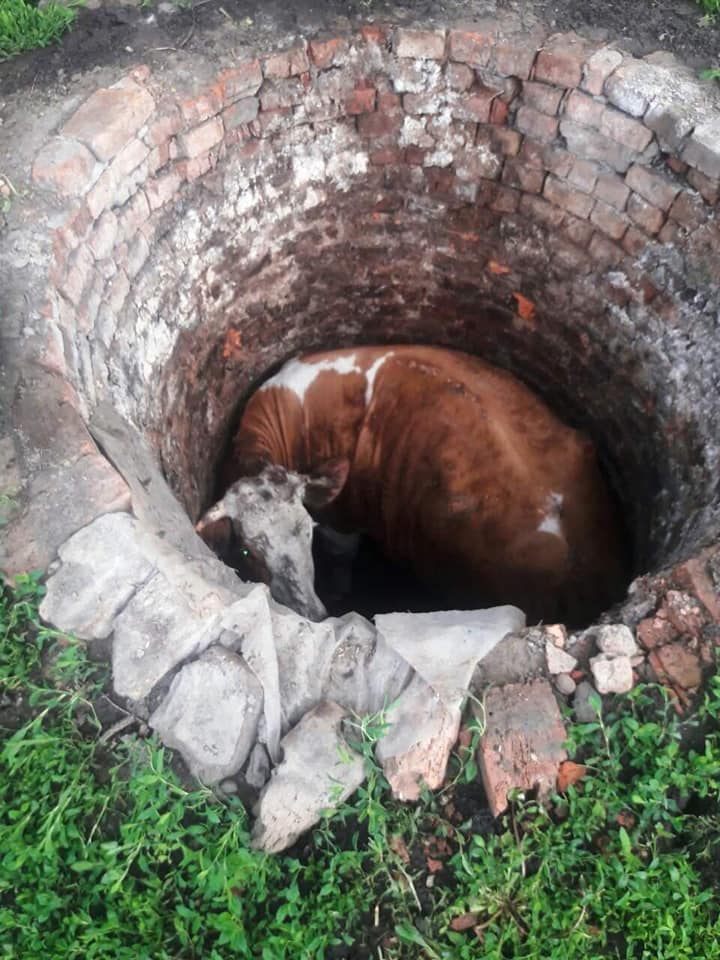 По словам хозяйки, корова во время выпаса оступилась и упала в старый технический колодец.